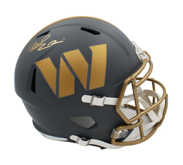 A Washington Commanders Speed Replica Slate NFL Helmet hand signed by Brian Robinson Jr. The item and signature are in excellent condition. Brian was selected by the Washington Commanders in the 2022 NFL draft. He is a 2x CFP National Champion and a 2021 Cotton Bowl Classic MVP. AUTHENTICATION: Your item has been tagged with a SmarTag Powered by Prova Technology, which gives you digital access to your items authentication records, including a proof picture from the signing.