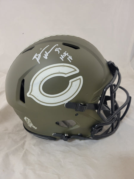 BRIAN URLACHER AUTOGRAPHED CHICAGO BEARS FULL SIZE SALUTE TO SERVICE (STS) SPEED AUTHENTIC HELMET W/ "HOF 18" INSCRIPTIONBECKETT QR CODE HOLOGRAMTHIS MEANS THE HELMET WAS SIGNED WITH A BECKETT REPRESENTATIVE PRESENT SO YOU CAN BE 100% CERTAIN ITS THE REAL THING.