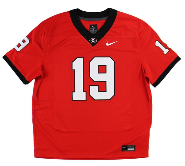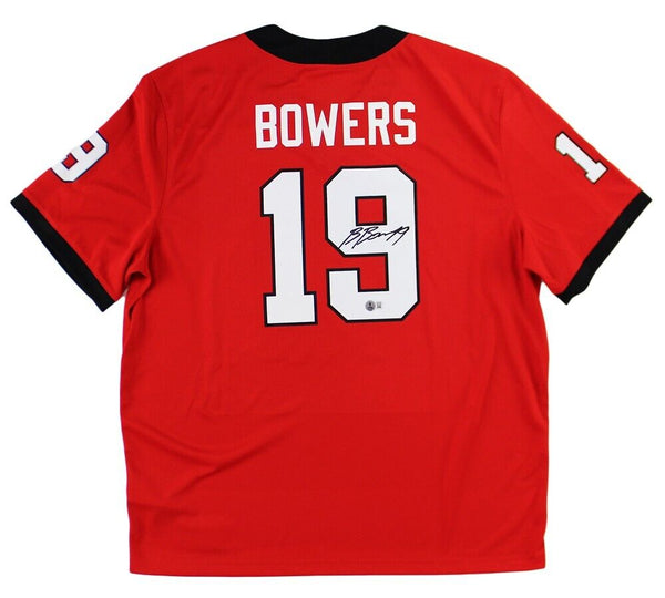 A Georgia Bulldogs Nike Game Red NCAA Jersey hand signed by Brock Bowers. The item and signature are in excellent condition. Brock Bowers is a tight end and was a first round draft pick in 2024. He also won two national championships with the Georgia Bulldogs. AUTHENTICATION: The item is accompanied by a Beckett Serial Numbered and Databased Hologram.