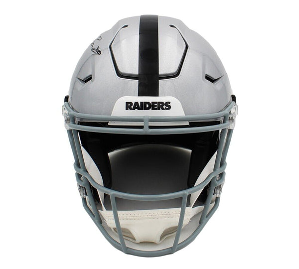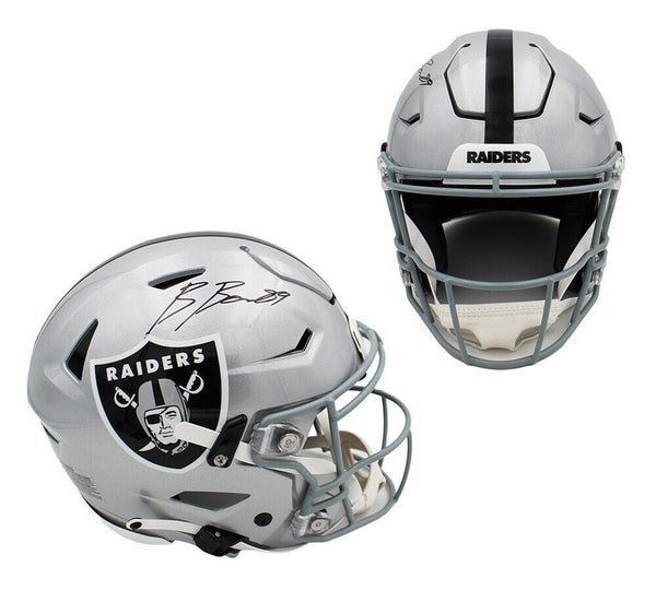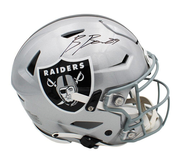 A Las Vegas Raiders Speed Flex Authentic NFL Helmet hand signed by Brock Bowers. The item and signature are in excellent condition. Brock Bowers is a tight end and was a first round draft pick in 2024. He also won two national championships with the Georgia Bulldogs. AUTHENTICATION: The item is accompanied by a Beckett Serial Numbered & Databased Hologram