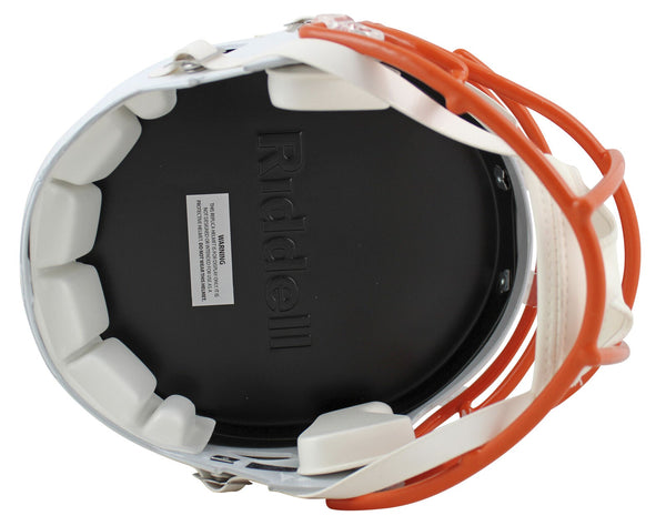 This Autographed Alternate Flat White Riddell Full Size Speed Rep Helmet has been Personally Signed by Baker Mayfield of the Cleveland Browns. This item is 100% Authentic to include a hologram by Beckett Authentication Services. This item may come with the new Beckett Authentication hologram that has a scannable QR code rather than the traditional COA. If you would like to have a COA, you are welcome to reach out to Beckett for a printed certification once you receive your item. This is a BAS Witnessed Protection Program item which means a Beckett Authentication Service representative was present when this item was being signed. This is a stock item. We conducted an autograph signing with Baker Mayfield and we have several of these available. The one you will receive will be of equal quality to the one pictured. This item can be verified through BAS Witnessed.