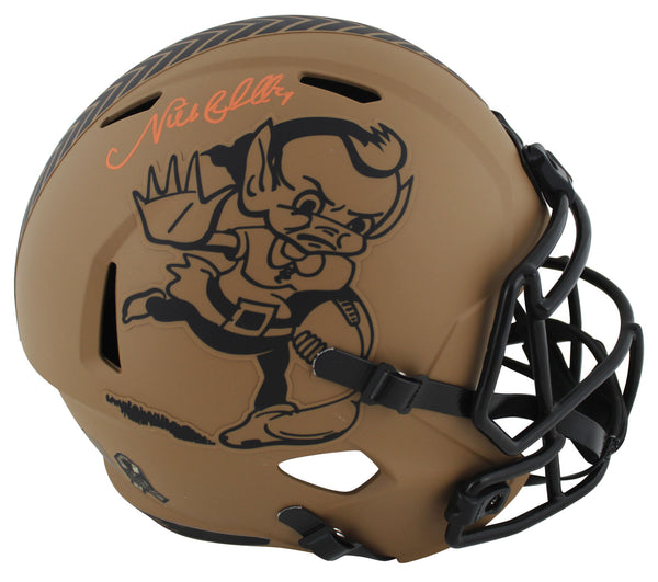 Browns Nick Chubb Signed Salute To Service II Full Size Speed Rep Helmet BAS Wit