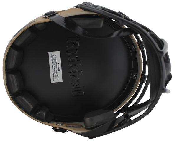 This Autographed Alternate 2023 Salute To Service II Riddell Full Size Speed Rep Helmet has been Personally Signed by Nick Chubb of the Cleveland Browns. This item is 100% Authentic to include a hologram by Beckett Authentication Services. This item may come with the new Beckett Authentication hologram that has a scannable QR code rather than the traditional COA. If you would like to have a COA, you are welcome to reach out to Beckett for a printed certification once you receive your item. This is a BAS Witnessed Protection Program item which means a Beckett Authentication Service representative was present when this item was being signed. We conducted an autograph signing with Nick Chubb where multiples of the same item were signed. While the photographs are representative of this item, the size, placement and strength of the signature may vary. Each item is hand signed, therefore, each autograph is unique. This item can be verified through BAS Witnessed.