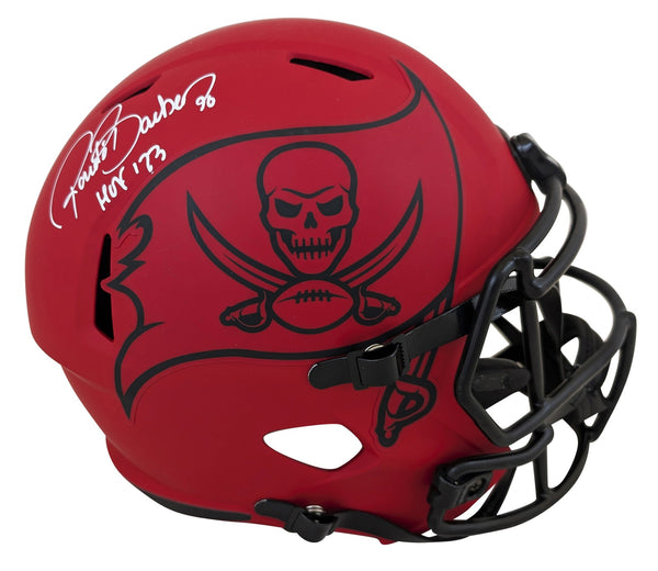 This Autographed Alternate Rave Riddell Full Size Speed Rep Helmet with the inscription of "HOF 23" has been Personally Signed by Ronde Barber of the Tampa Bay Buccaneers. This item is 100% Authentic to include a hologram by Beckett Authentication Services. This item will come with an affixed Beckett Authentication Services (BAS) authentication sticker, which includes a scannable QR code to verify authenticity. Please note that Beckett no longer provides serial-numbered COA cards, and the attached BAS sticker will serve as the complete authentication for this item. This is a BAS Witnessed Protection Program item which means a Beckett Authentication Service representative was present when this item was being signed. We conducted an autograph signing with Ronde Barber where multiples of the same item were signed. While the photographs are representative of this item, the size, placement and strength of the signature may vary. Each item is hand signed, therefore, each autograph is unique. This item can be verified through BAS Witnessed.