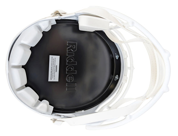 This Autographed Alternate Salute To Service III Riddell Full Size Speed Rep Helmet W/ Uv Mirrored Back Acrylic Display Case with the inscription of "HOF 23" has been Personally Signed by Ronde Barber of the Tampa Bay Buccaneers. This item is 100% Authentic to include a hologram by Beckett Authentication Services. This item will come with an affixed Beckett Authentication Services (BAS) authentication sticker, which includes a scannable QR code to verify authenticity. Please note that Beckett no longer provides serial-numbered COA cards, and the attached BAS sticker will serve as the complete authentication for this item. This is a BAS Witnessed Protection Program item which means a Beckett Authentication Service representative was present when this item was being signed. We conducted an autograph signing with Ronde Barber where multiples of the same item were signed. While the photographs are representative of this item, the size, placement and strength of the signature may vary. Each item is hand signed, therefore, each autograph is unique. This item can be verified through BAS Witnessed.