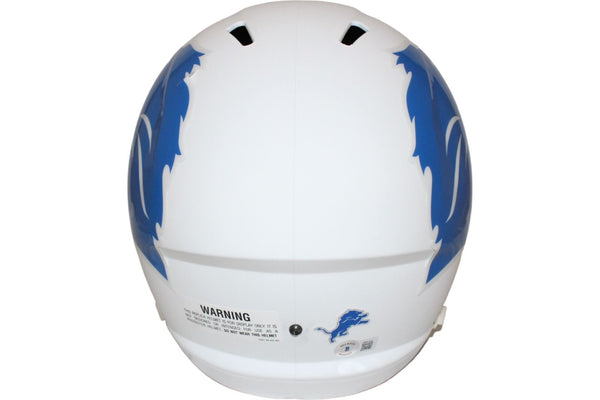 Calvin Johnson Autographed/Signed Detroit Lions F/S AMP Helmet Beckett 44033 The number in the listing title is just an inventory sku for our records and is not the authentication number. The item pictured is a stock photo unless otherwise noted. This is a Detroit Lions AMP Replica Full Size Helmet that was personally autographed by Calvin Johnson. Includes a certificate of authenticity from Beckett Authentication Services (BAS) and Denver Autographs.