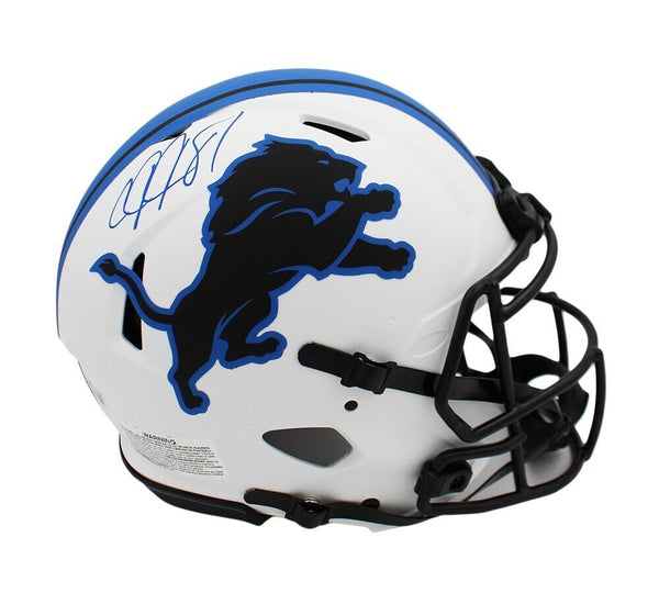 A Detroit Lions Speed Authentic Lunar NFL Helmet hand signed by Calvin Johnson. The item and signature are in excellent condition. Calvin is a former NFL Wide Receiver. He was selected as 2nd overall pick in the 2007 NFL Draft by the Detroit Lions. In college, he played for Georgia Tech Yellow Jackets. He is a 6x Pro Bowler, 3x First-team All-Pro, and 2x NFL Receiving Yards Leader. AUTHENTICATION: The item is accompanied by a Beckett Serial Numbered and Databased Hologram.
