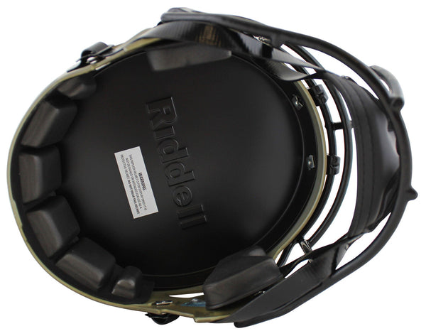This Autographed Alternate Salute To Service Riddell Full Size Speed Rep Helmet has been Personally Signed by Kurt Warner of the Arizona Cardinals. This item is 100% Authentic to include a hologram by Beckett Authentication Services. This item may come with the new Beckett Authentication hologram that has a scannable QR code rather than the traditional COA. If you would like to have a COA, you are welcome to reach out to Beckett for a printed certification once you receive your item. This is a BAS Witnessed Protection Program item which means a Beckett Authentication Service representative was present when this item was being signed. We conducted an autograph signing with Kurt Warner where multiples of the same item were signed. While the photographs are representative of this item, the size, placement and strength of the signature may vary. Each item is hand signed, therefore, each autograph is unique. This item can be verified through BAS Witnessed.