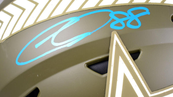 CeeDee Lamb Autographed Dallas Cowboys F/S Salute to Service Speed Flex Helmet -Fanatics *Blue This is a hand autograph of CeeDee Lamb of the Dallas Cowboys on a Riddell Football Full Size Salute to Service Speed Flex Authentic Helmet. This item has a Fanatics Authentication, which comes with a numbered sticker hologram and a QR code for verification. You can view this item on the Fanatics Authentication website and it shows when and where the item was signed. It was signed either at a public autograph appearance or a private signing. This is a stock photo of the item. Although you may not receive this exact item, the item you receive is virtually identical and brand new in great shape.