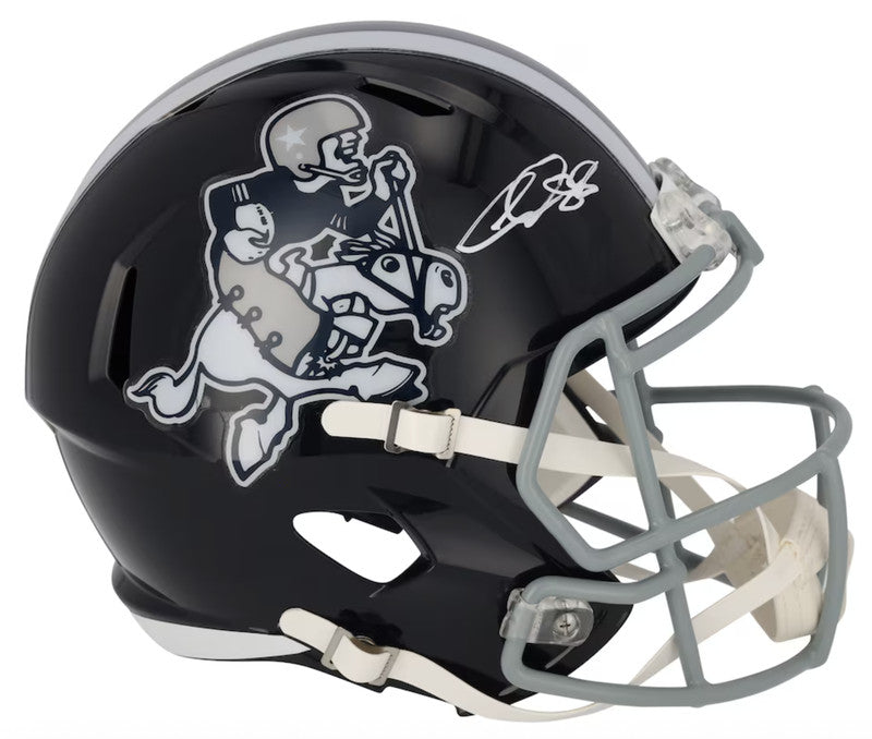 Ceedee Lamb Autographed Dallas Cowboys 'Cowboy Joe' Logo Speed Full Size Helmet FanaticsThis full size replica speed helmet has been personally hand-signed by CeeDee Lamb. It is officially licensed by the National Football League and comes with an individually numbered, tamper-evident hologram from Fanatics Authentic. To ensure authenticity, the hologram can be reviewed online. This process helps to ensure that the product purchased is authentic and eliminates any possibility of duplication or fraud.