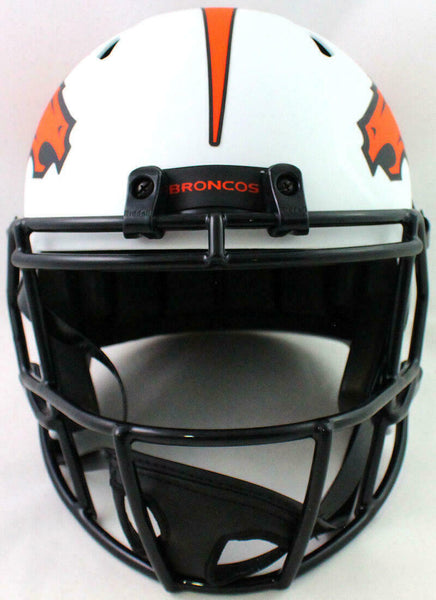 Champ Bailey Autographed Denver Broncos F/S Lunar Speed Helmet- Beckett W*Orange This is a Champ Bailey of the Denver Broncos hand autographed Riddell Football full size Lunar speed replica helmet. This item has a Beckett Witnessed Authentication, which comes with a numbered and a matching Beckett Certificate of Authenticity. You can view this item on the Beckett Authentication website and it shows when and where the item was signed. It was signed either at a public autograph appearance or a private signing. This is a stock photo of the item. Although you may not receive this exact item, the item you receive is virtually identical, brand new, and in great shape.