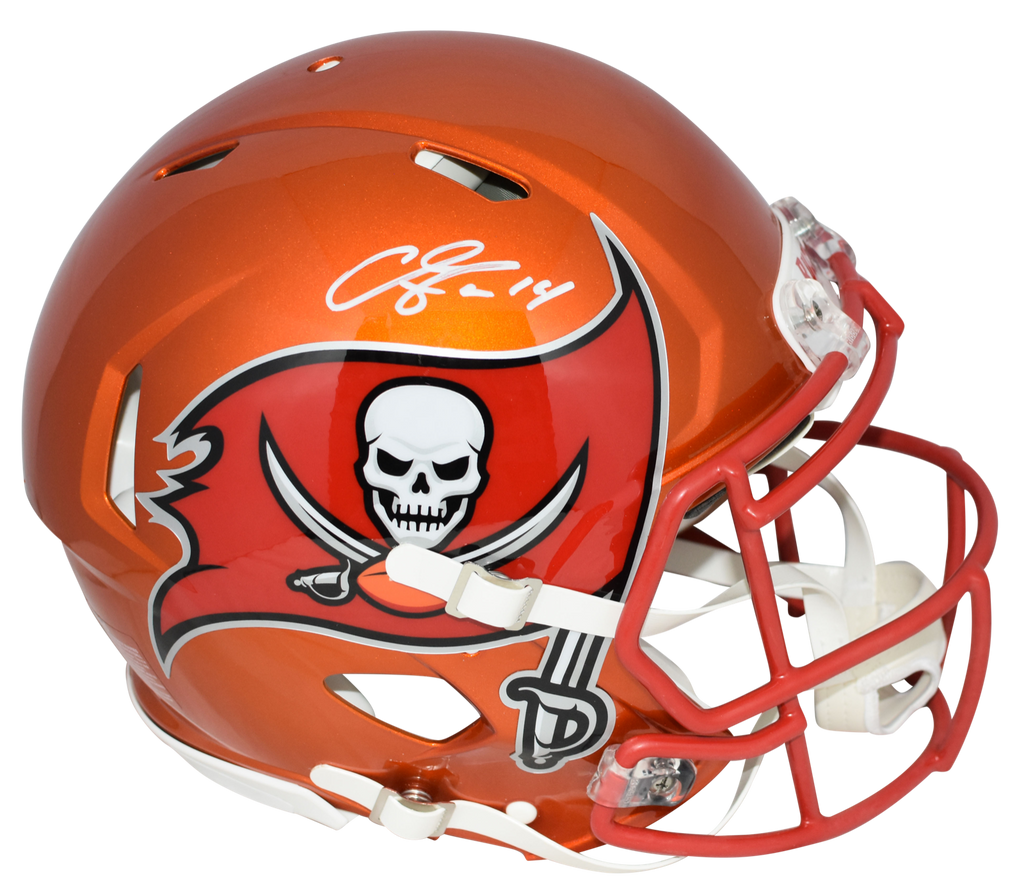 Chris Godwin, Pro Bowl wide receiver for the Tampa Bay Buccaneers, has hand signed this Bucs Riddell Speed Flash full-size authentic helmet at a private signing. This helmet is fully padded inside like the ones worn on the field. This item is authenticated by Beckett Authentication Services and was signed in the presence of one of their representatives. Their tamper-evident hologram featuring a QR code and serial number is on the item. The authenticity can be verified online by entering the serial number or scanning the QR code.Item pictured may not be the exact item you will receive. It will be similar quality, and we guarantee your satisfaction.