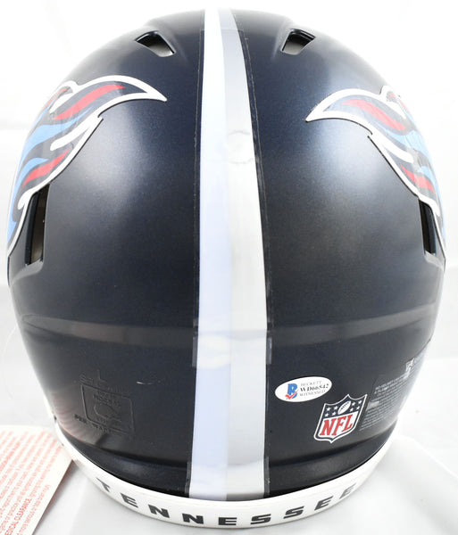 This is a Chris Johnson of the Tennessee Titans autographed Riddell football full size Speed Authentic helmet. Inscribed 2006 Rush Yds 2009. This item has a Beckett Witnessed Authentication, which comes with a numbered hologram and matching COA. You can view this item on the Beckett Authentication website, and it shows when and where the item was signed. It was signed either at a public autograph appearance or a private signing. This is a stock photo of the item. Although you may not receive this exact item, the item you receive is virtually identical, brand new, and in great shape. *Autograph location may vary* This is a Chris Johnson of the Tennessee Titans autographed Riddell football full size Speed Authentic helmet. Inscribed 2006 Rush Yds 2009. This item has a Beckett Witnessed Authentication, which comes with a numbered hologram and matching COA. You can view this item on the Beckett Authentication website, and it shows when and where the item was signed. It was signed either at a public autograph appearance or a private signing. This is a stock photo of the item. Although you may not receive this exact item, the item you receive is virtually identical, brand new, and in great shape. *Autograph location may vary*