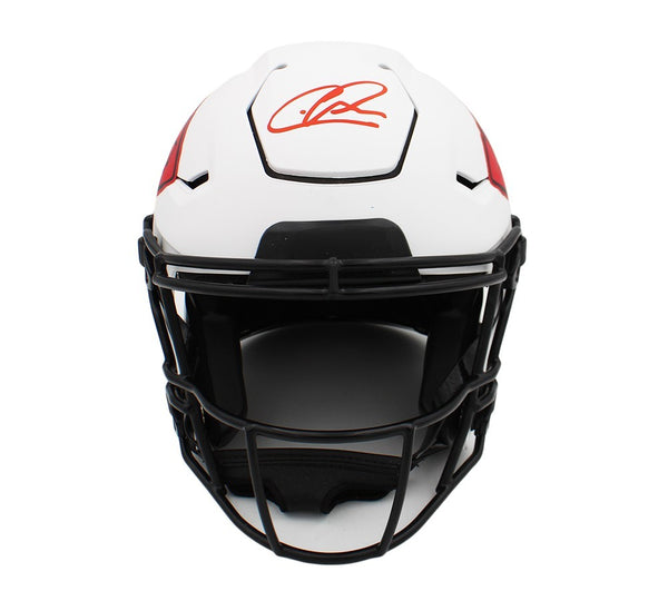A Kansas City Chiefs Speed Flex Authentic Lunar NFL Helmet hand signed by Chris Jones. The item and signature are in excellent condition. Chris Jones is a dominant defensive tackle for the Kansas City Chiefs. Drafted in the 2nd round of the 2016 NFL Draft out of Mississippi State, he has become a cornerstone of the Chiefs' defense. A multi-time Pro Bowler and All-Pro, Jones has played a key role in helping Kansas City win three Super Bowls (LIV, LVII, LVIII) AUTHENTICATION: The item has been tagged with a SmarTag powered by Prova Technology, which gives you digital access to the items authentication records, including a proof picture from the signing.