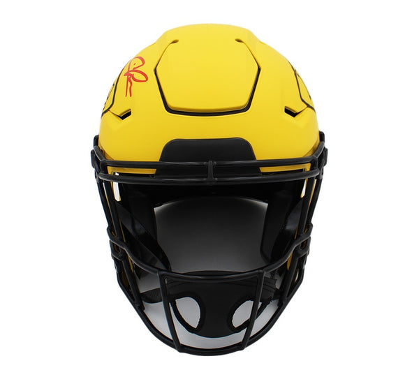 A Kansas City Chiefs Speed Flex Authentic Rave NFL Helmet hand signed by Chris Jones. The item and signature are in excellent condition. Chris Jones is a dominant defensive tackle for the Kansas City Chiefs. Drafted in the 2nd round of the 2016 NFL Draft out of Mississippi State, he has become a cornerstone of the Chiefs' defense. A multi-time Pro Bowler and All-Pro, Jones has played a key role in helping Kansas City win three Super Bowls (LIV, LVII, LVIII) AUTHENTICATION: The item has been tagged with a SmarTag powered by Prova Technology, which gives you digital access to the items authentication records, including a proof picture from the signing.