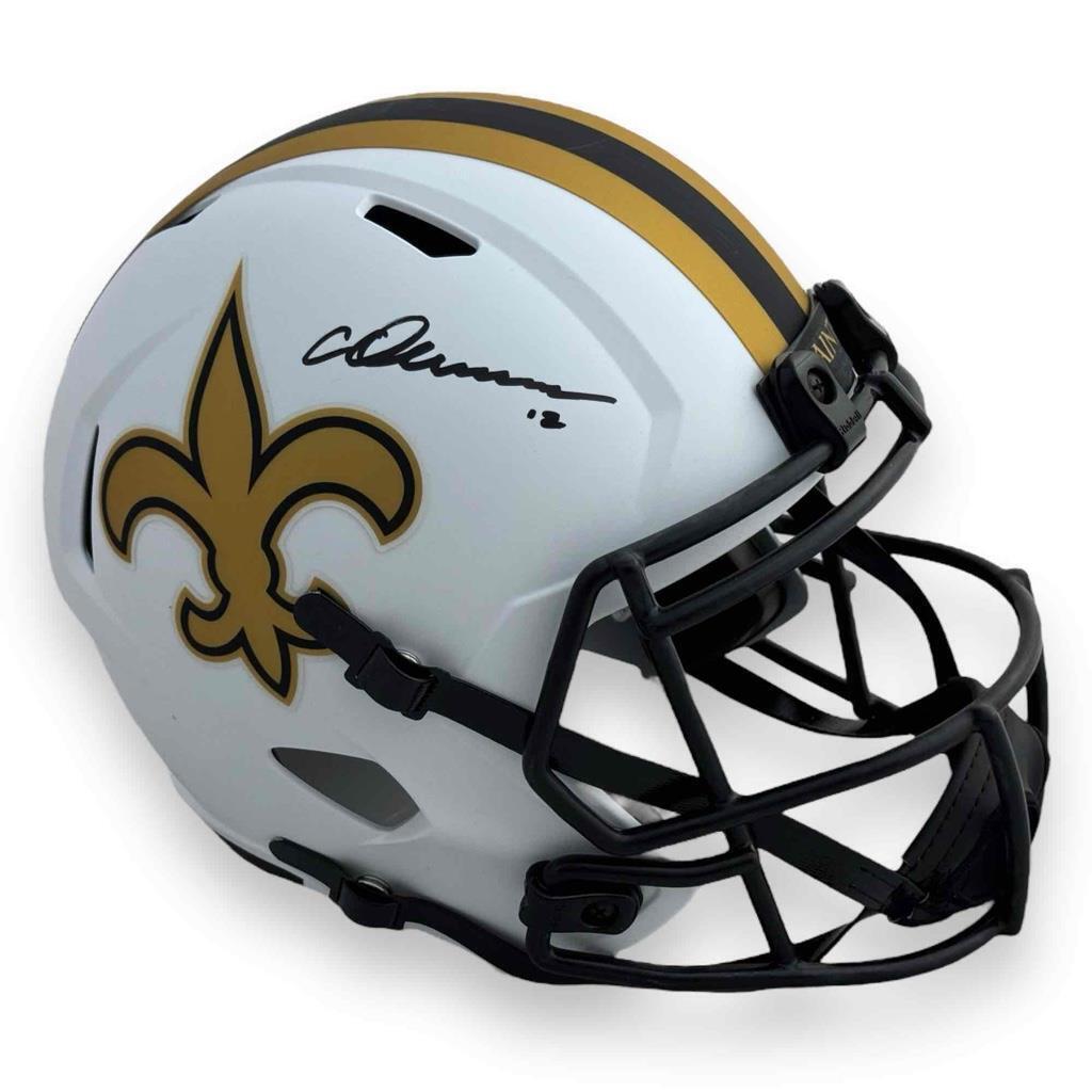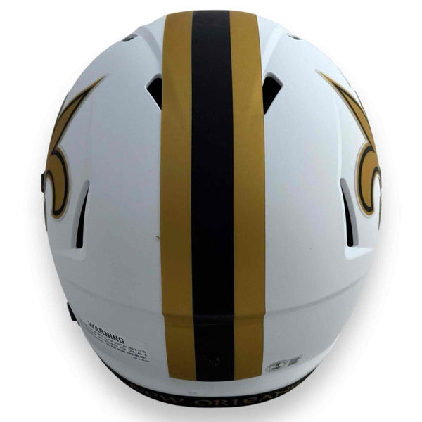 This signed item is brand new in box. This item will make a great gift or a great addition to any collection at an AFFORDABLE PRICE! ATHLETE: Chris Olave ITEM: New Orleans Saints Lunar Speed Full Size Replica Helmet AUTHENTICATION: This item comes with a Beckett Authentication serial #'ed hologram affixed to the item. To ensure authenticity, the hologram can be reviewed online. This process helps to ensure that the product purchased is authentic and eliminates any possibility of duplication or fraud. This item was signed in the presence of a Beckett representative.