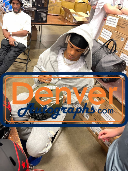 The number in the listing title is just an inventory sku for our records and is not the authentication number. The item pictured is a stock photo unless otherwise noted. This is a New England Patriots Full Size Authentic 2022 Salute to Service Helmet that was personally autographed by Christian Gonzalez. Includes a certificate of authenticity from Beckett Authentication Services (BAS) and Denver Autographs.FREE SHIPPING within the USA on orders over $10!