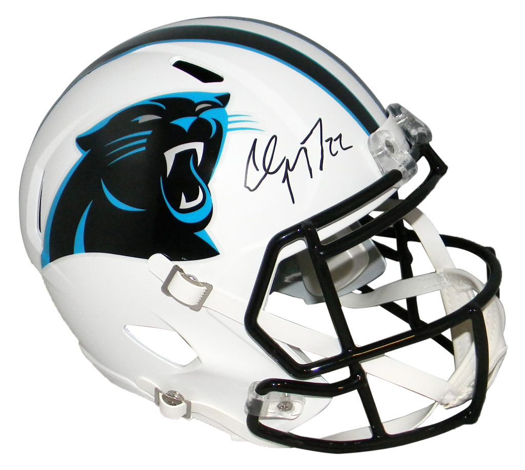Christian McCaffrey, star running back for the Carolina Panthers, has hand signed this Panthers Riddell Speed Flat White full-size replica helmet at a private signing. This item comes with a certificate of authenticity (COA) from Beckett Authentication Services and was signed in the presence of one of their representatives. You will receive a serial-numbered COA along with a matching serial-numbered sticker on the helmet. The authenticity can be verified online by entering the serial number.Item pictured may not be the exact item you will receive. It will be similar quality, and we guarantee your satisfaction.