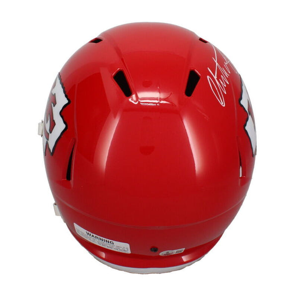 This kansas city chiefs full size replica riddell speed helmet has been personally hand-signed by christian okoye. it comes with an individually numbered, tamper-evident hologram from beckett authentic. to ensure authenticity, the hologram can be reviewed online. this process helps to ensure that the product purchased is authentic and eliminates any possibility of duplication or fraud.