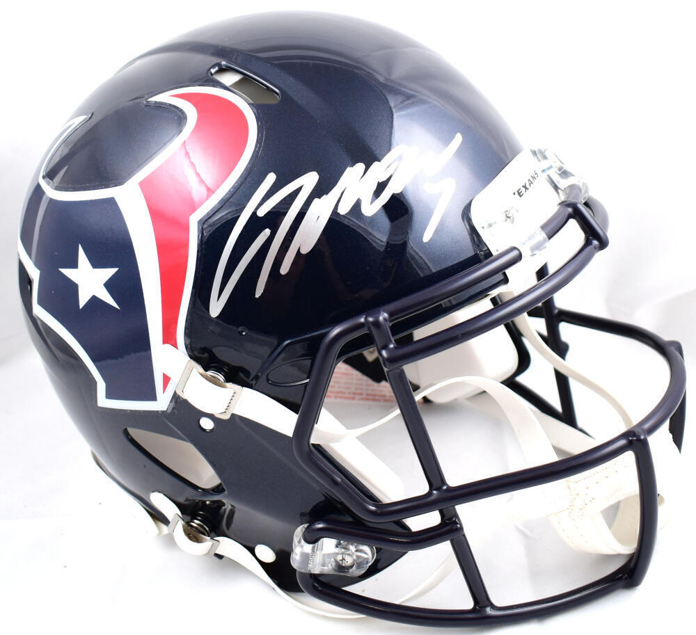 C.J. Stroud Autographed Houston Texans F/S Speed Authentic Helmet - Fanatics *Silver This is a hand autograph of C.J. Stroud of the Houston Texans on a Riddell Football Full Size Speed Authentic Helmet. This item has a Fanatics Authentication, which comes with a numbered sticker hologram and a QR code for verification. You can view this item on Fanatics website, it shows the item was signed. It was signed either at a public autograph appearance or a private signing. This is a stock photo of the item. Although you may not receive this exact item, the item you receive is virtually identical and brand new in great shape.