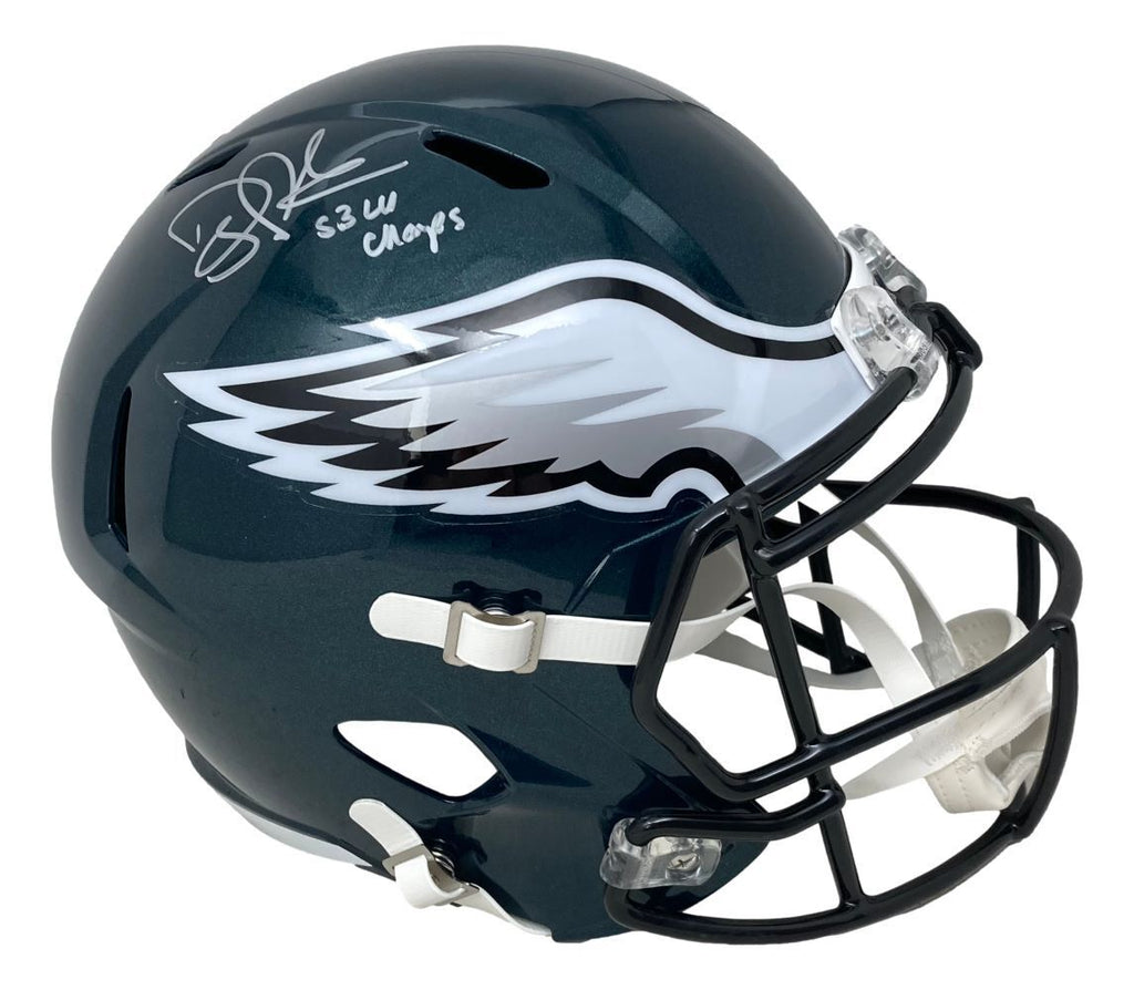 Featured is a Doug Pederson signed Philadelphia Eagles speed replica helmet, inscribed "SB LII Champs". This helmet has been hand signed by Pederson and comes with the Beckett hologram and certificate of authenticity. This helmet would make a great addition to any sports memorabilia collection! SPECIFICATIONS Autographed By: Doug Pederson Team: Philadelphia Eagles Sport: Football Authentication: Beckett Grading Services
