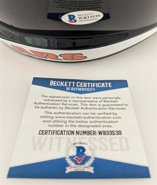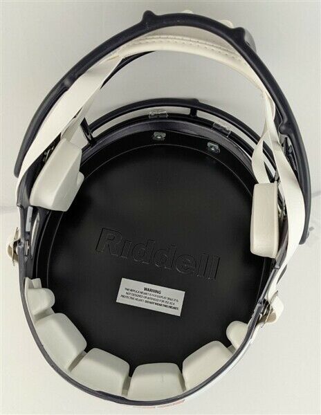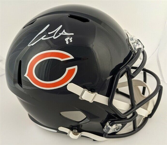 This autographed full size Riddell replica Speed helmet has been personally hand-signed by Cole Kmet of the Chicago Bears. This autograph is certified by Beckett Authentication Services (BAS) Witness Certification. That means that a Beckett representative was present when this item was signed. It comes with the numbered authentication hologram and matching Certificate of Authenticity.