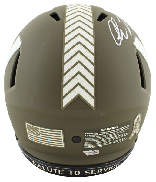 This Autographed Alternate Salute To Service Riddell Authentic Full Size Speed Proline Helmet has been Personally Signed by Chase Young of the Washington Commanders. This item is 100% Authentic to includes a numbered hologram by Fanatics. We conducted an autograph signing with Chase Young where multiples of the same item were signed. While the photographs are representative of this item, the size, placement and strength of the signature may vary. Each item is hand signed, therefore, each autograph is unique. This item can be verified through Fanatics.