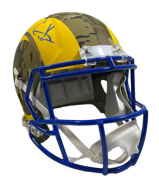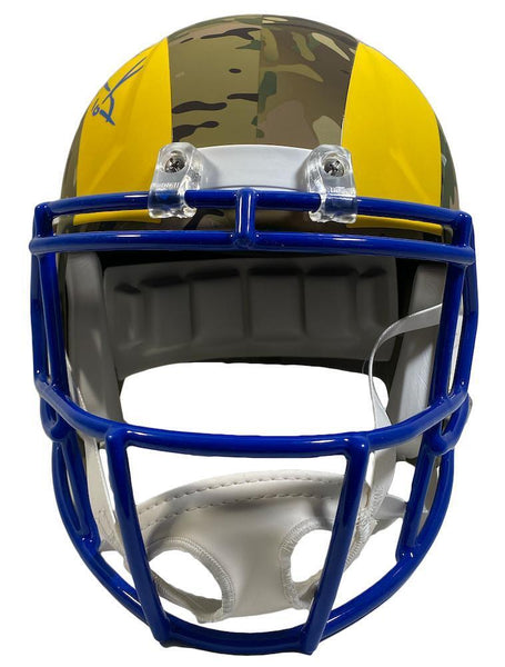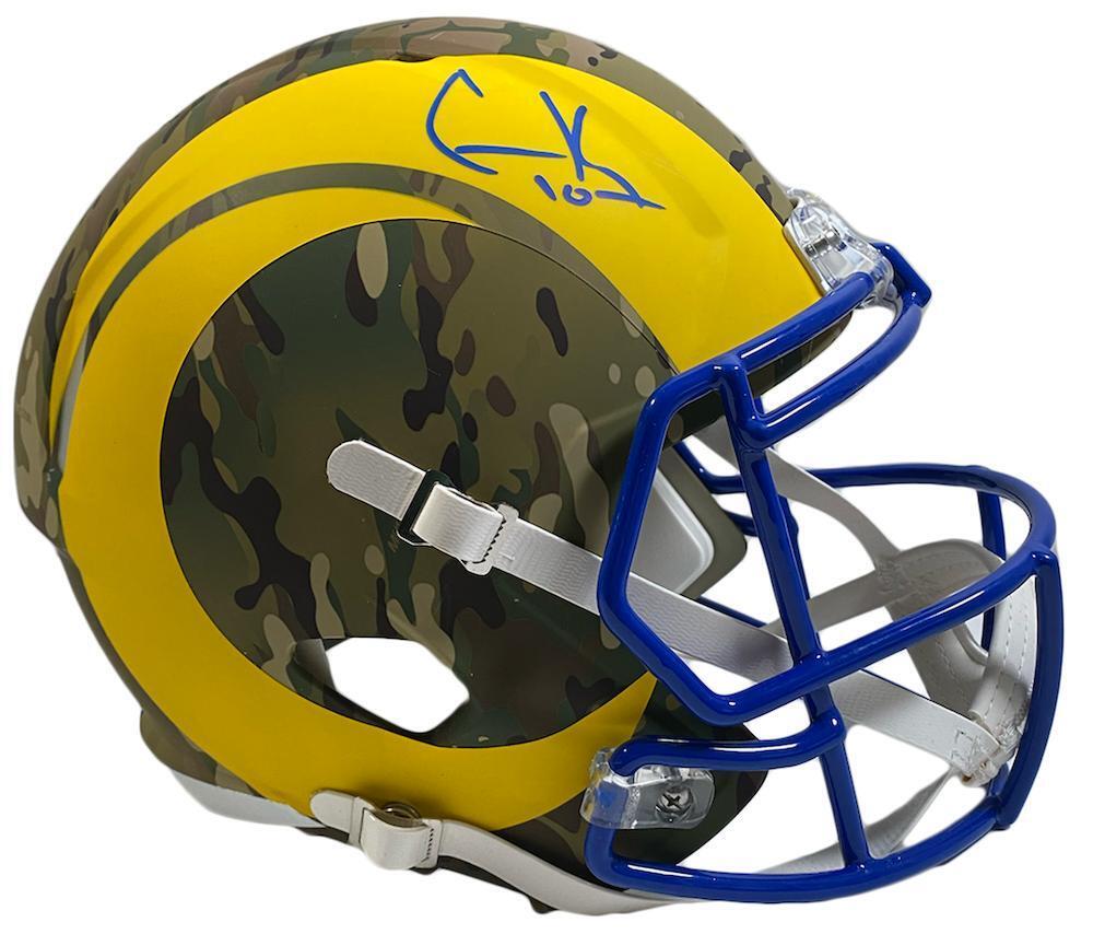 This camo speed replica full size helmet has been personally hand-signed by cooper kupp. it is officially licensed by the national football league and comes with an individually numbered, tamper-evident hologram from fanatics authentic. to ensure authenticity, the hologram can be reviewed online. this process helps to ensure that the product purchased is authentic and eliminates any possibility of duplication or fraud.the autograph includes an official fanatics hologram and matching coa for authenticity purposes.comes with a tamper-evident hologram from fanatics authenticatedofficially licensed by the nfl money back guarantee! if for any reason you are not completely satisfied with the quality or authenticity of your purchase, we will gladly give you a full refund or exchange, whichever you prefer up to 30 days after purchase. please feel free to e-mail us with any questions. good luck bidding!!! authenticator pre-certified authenticator: fanatics authenticated history of item: cooper kupp has signed this item in the presence of a representative from fanatics. describe how you came to possess this item: super sports center is a fully authorized dealer for upper deck authenticated as well as mounted memories and steiner sports. other information about you and / or the item: super sports center strives to deliver the most authentic in sports memorabilia from trusted companies like mounted memories, steiner sports and upper deck authenticated. if it exists, we can find it for you!