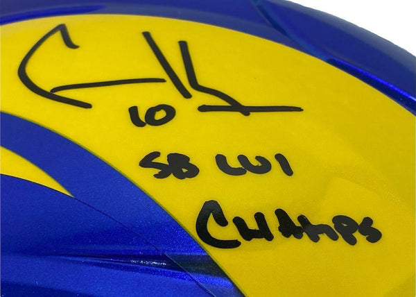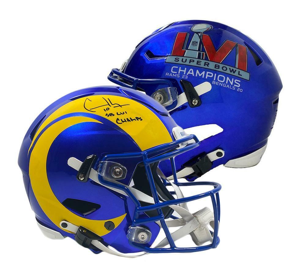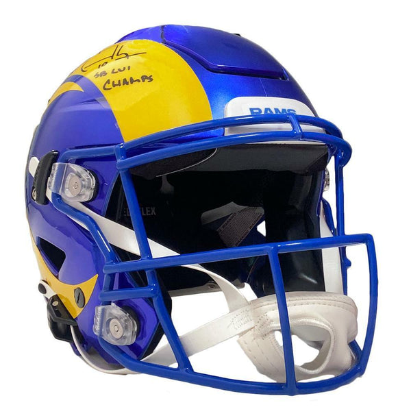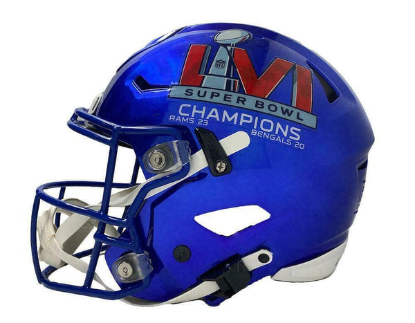 This authentic Speed Flex helmet has been personally hand-signed by Cooper Kupp with the added inscription "SB LVI Champs." This helmet also includes the official Super Bowl LVI logo on the non-signature side of the helmet. It is officially licensed by the National Football League and comes with an individually numbered, tamper-evident hologram from Fanatics Authentic. To ensure authenticity, the hologram can be reviewed online. This process helps to ensure that the product purchased is authentic and eliminates any possibility of duplication or fraud.The autograph includes an official Fanatics hologram and matching COA for authenticity purposes.Comes with a tamper-evident hologram from Fanatics AuthenticatedOfficially licensed by the NFL MONEY BACK GUARANTEE! If for any reason you are not completely satisfied with the quality or authenticity of your purchase, we will gladly give you a full refund or exchange, whichever you prefer up to 30 days after purchase. Please feel free to e-mail us with any questions. Thank you. Authenticator Pre-Certified Authenticator: Fanatics Authenticated History of item: Cooper Kupp has signed this item in the presence of a representative from Fanatics. Describe how you came to possess this item: Super Sports Center is a fully authorized dealer for Upper Deck Authenticated as well as Mounted Memories and Steiner Sports. Other information about you and / or the item: Super Sports Center strives to deliver the most authentic in sports memorabilia from trusted companies like Mounted Memories, Steiner Sports and Upper Deck Authenticated. If it exists, we can find it for you!