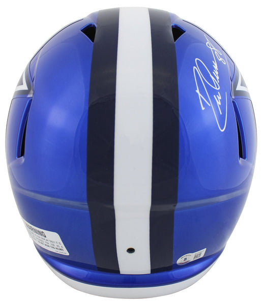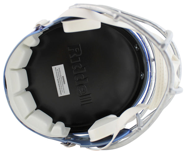 This Autographed Alternate Flash Riddell Full Size Speed Rep Helmet with the inscription of "HOF 21" has been Personally Signed by Drew Pearson of the Dallas Cowboys. This item is 100% Authentic to include a hologram by Beckett Authentication Services. This item will come with the new Beckett Authentication hologram that has a scannable QR code rather than the traditional COA. If you would like to have a COA, you are welcome to reach out to Beckett for a printed certification once you receive your item. This is a BAS Witnessed Protection Program item which means a Beckett Authentication Service representative was present when this item was being signed. We conducted an autograph signing with Drew Pearson where multiples of the same item were signed. While the photographs are representative of this item, the size, placement and strength of the signature may vary. Each item is hand signed, therefore, each autograph is unique. This item can be verified through BAS Witnessed.
