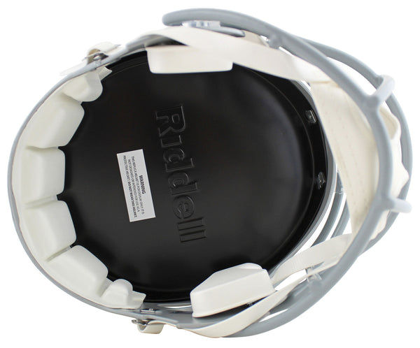 This Autographed Silver Full Size Speed Rep Helmet has been Personally Signed by Roger Staubach of the Dallas Cowboys. This item is 100% Authentic to include a hologram by Beckett Authentication Services. This item will come with the new Beckett Authentication hologram that has a scannable QR code rather than the traditional COA. If you would like to have a COA, you are welcome to reach out to Beckett for a printed certification once you receive your item. This is a BAS Witnessed Protection Program item which means a Beckett Authentication Service representative was present when this item was being signed. We conducted an autograph signing with Roger Staubach where multiples of the same item were signed. While the photographs are representative of this item, the size, placement and strength of the signature may vary. Each item is hand signed, therefore, each autograph is unique. This item can be verified through BAS Witnessed.