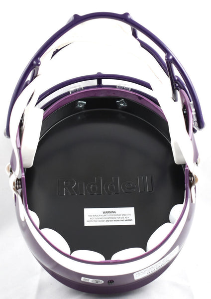 Cris Carter Autographed Minnesota Vikings F/S 83-01 Speed Helmet-Beckett W Hologram *White This is a Cris Carter of the Minnesota Vikings hand autographed Riddell Football 83-01 Speed Full Size Replica Helmet. This item has a Beckett Witness Authentication, which comes with a numbered hologram and a QR code for verification. You can view this item on the Beckett Authentication website, it shows when and where the item was signed. It was signed either at a public autograph appearance or a private signing. This is a stock photo of the item. Although you may not receive this exact item, the item you receive is virtually identical, brand new, and in great shape.