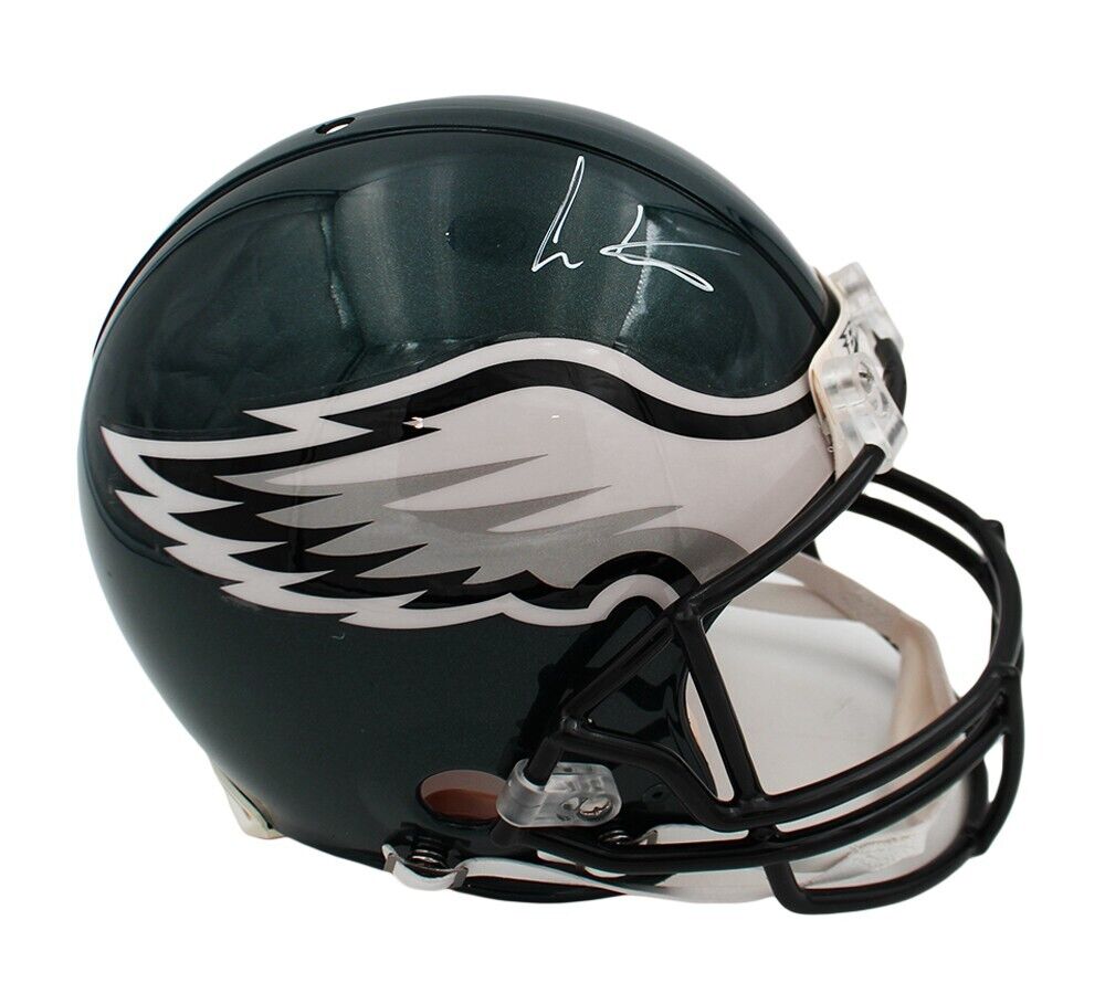 A Philadelphia Eagles Current Authentic NFL Helmet hand signed by Cris Carter. The item and signature are in excellent condition. Cris Carter is a retired wide receiver who played college football for the Ohio State Buckeyes. He played professionally for the Philadelphia Eagles, Minnesota Vikings, and Miami Dolphins of the NFL. He played in eight consecutive Pro Bowls. Carter was inducted into the Pro Football Hall of Fame in 2013. AUTHENTICATION: The item is accompanied by a JSA Sports Certificate of Authenticity - JSA Sports Serial Numbered and Databased Hologram -