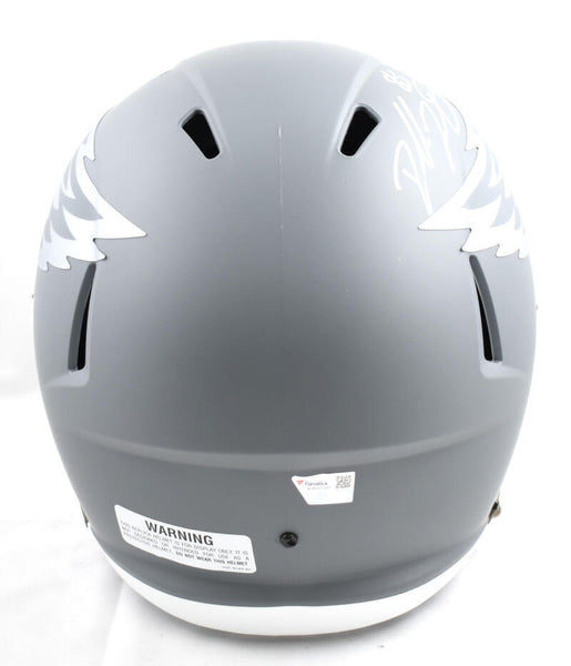Dallas Goedert Autographed Philadelphia Eagles F/S Slate Speed Helmet - Fanatics *White This is a hand autograph of Dallas Goedert of the Philadelphia Eagles on a Riddell Football Full Size Slate Speed Replica Helmet. This item has a Fanatics Authentication, which comes with a numbered sticker hologram and a QR code for verification. You can view this item on the Fanatics Authentication website and it shows when and where the item was signed. It was signed either at a public autograph appearance or a private signing. This is a stock photo of the item. Although you may not receive this exact item, the item you receive is virtually identical and brand new in great shape.