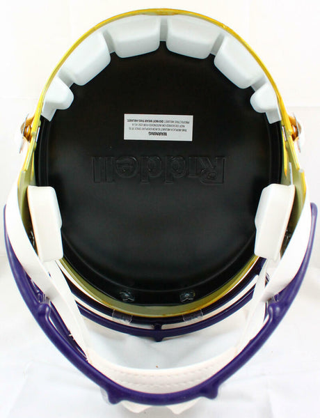 Dalvin Cook Autographed Minnesota Vikings F/S Flash Speed Helmet-Beckett W Hologram *Black This is an Dalvin Cook of the Minnesota Vikings hand autographed Riddell Full Size Flash Speed Replica Helmet. This item has a Beckett Witnessed Authentication, which comes with a numbered hologram and a QR code for verification. You can view this item on the Beckett website, it shows when and where the item was signed. It was signed either at a public autograph appearance or a private signing. This is a stock photo of the item. Although you may not receive this exact item, the item you receive is virtually identical, brand new, and in great shape.