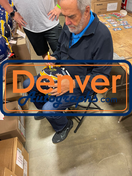 The number in the listing title is just an inventory sku for our records and is not the authentication number. This is a stock photo, unless otherwise noted. This is a San Diego Chargers Throwback 1974-1987 Full Size Replica Helmet that was personally autographed by Dan Fouts, includes "HOF" inscription. Includes a certificate of authenticity from Beckett Authentication Services (BAS) and Denver Autographs.