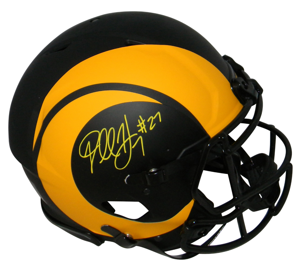 Darrell Henderson Jr, star running back for the Los Angeles Rams, has hand signed this Rams Riddell Speed Eclipse full-size replica helmet at a private signing. This item comes with a certificate of authenticity (COA) from Beckett Authentication Services and was signed in the presence of one of their representatives. You will receive a serial-numbered COA along with a matching serial-numbered sticker on the helmet. The authenticity can be verified online by entering the serial number.Item pictured may not be the exact item you will receive. It will be similar quality, and we guarantee your satisfaction.