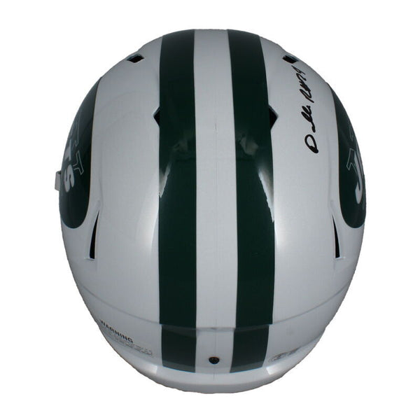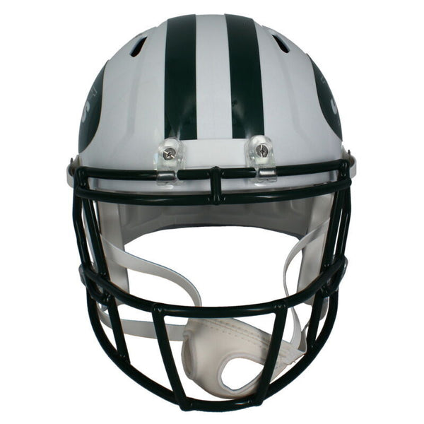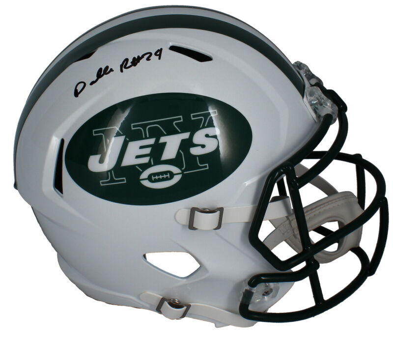 This New York Jets full size replica Riddell Speed helmet has been personally hand-signed by Darrelle Revis. It comes with an individually numbered, tamper-evident hologram from Beckett Authentic. To ensure authenticity, the hologram can be reviewed online. This process helps to ensure that the product purchased is authentic and eliminates any possibility of duplication or fraud.