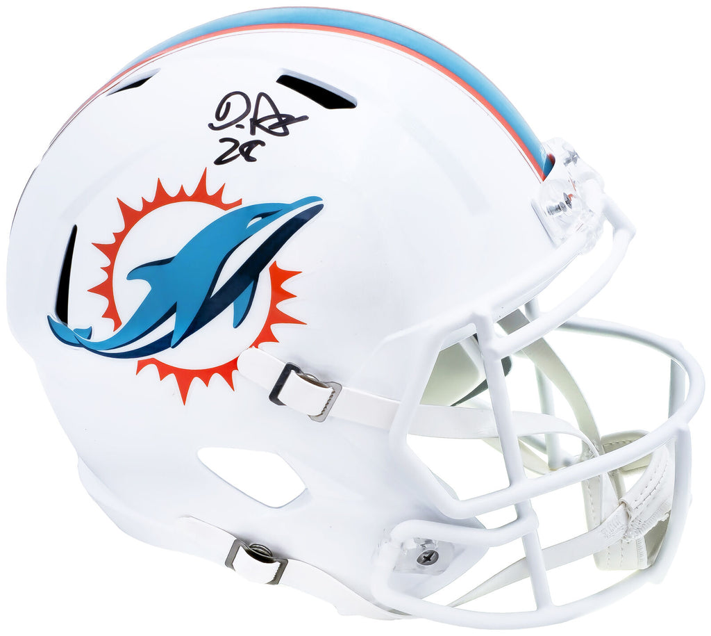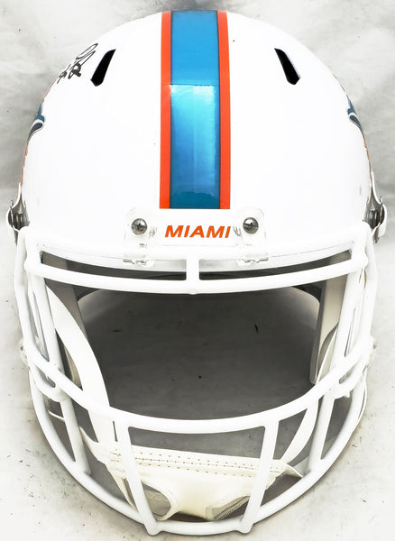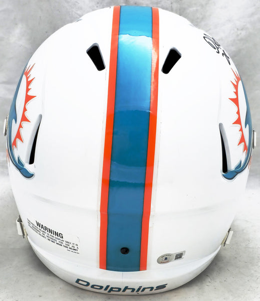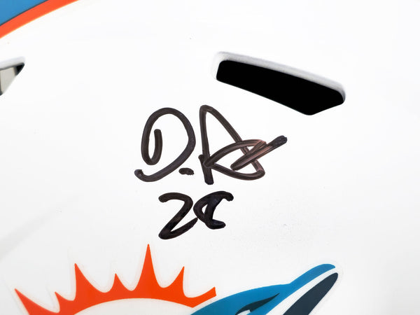 This is a Miami Dolphins White Full Size Speed Replica Helmet that has been hand signed by De'Von Achane. This item has been witnessed and certified authentic by Beckett Authentication (BAS) and comes with their tamper-proof witness sticker.