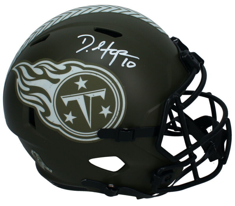 This Tennessee Titans STS full size replica speed helmet has been personally hand-signed by DeAndre Hopkins. It comes with an individually numbered, tamper-evident hologram from Beckett Authentic. To ensure authenticity, the hologram can be reviewed online. This process helps to ensure that the product purchased is authentic and eliminates any possibility of duplication or fraud.