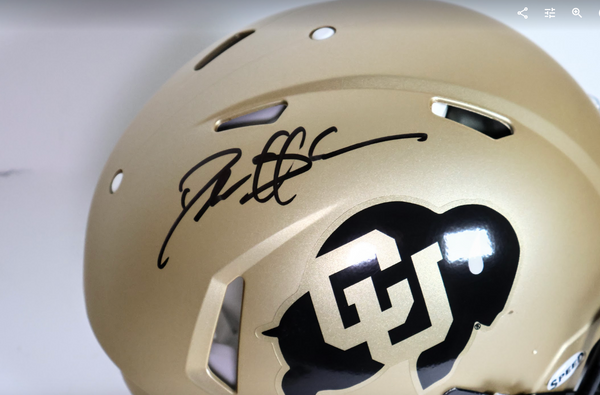 Deion Sander Autographed Gold Speed Helmet Beckett Authenticated