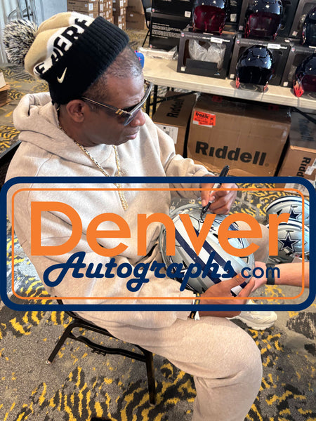 The number in the listing title is just an inventory sku for our records and is not the authentication number. The item pictured is a stock photo unless otherwise noted. This is a Dallas Cowboys Full Size SpeedFlex Helmet that was personally autographed by Deion Sanders. Includes a certificate of authenticity from Beckett Authentication Services (BAS) and Denver Autographs.