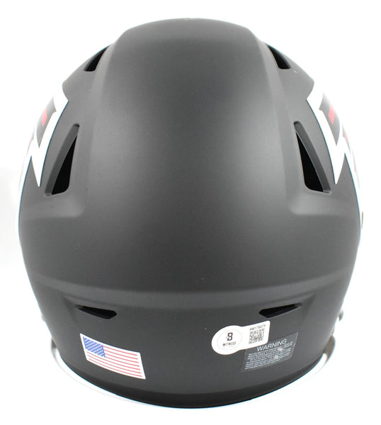 This is a Deion Sanders of the Atlanta Falcons autographed Riddell football Mid-Size SpeedFlex helmet. This item has a Beckett Witnessed Authentication, which comes with a numbered hologram and a QR code for verification. You can view this item on the Beckett Authentication website, and it shows when and where the item was signed. It was signed either at a public autograph appearance or a private signing. This is a stock photo of the item. Although you may not receive this exact item, the item you receive is virtually identical, brand new, and in great shape. *Autograph location may vary* This is a Deion Sanders of the Atlanta Falcons autographed Riddell football Mid-Size SpeedFlex helmet. This item has a Beckett Witnessed Authentication, which comes with a numbered hologram and a QR code for verification. You can view this item on the Beckett Authentication website, and it shows when and where the item was signed. It was signed either at a public autograph appearance or a private signing. This is a stock photo of the item. Although you may not receive this exact item, the item you receive is virtually identical, brand new, and in great shape. *Autograph location may vary*