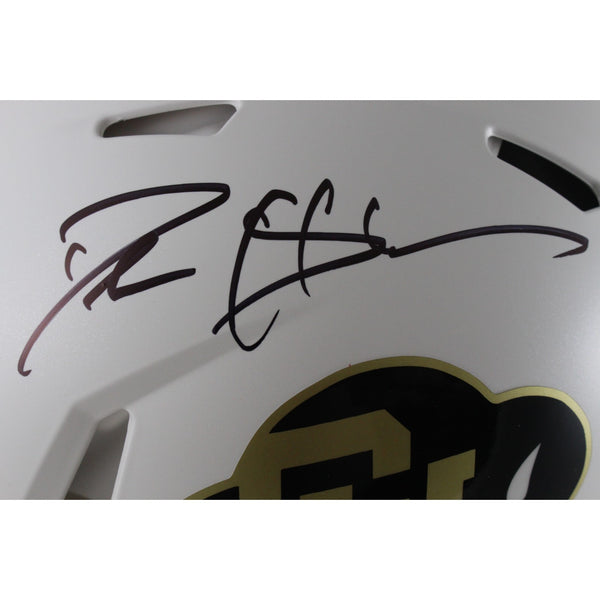 The number in the listing title is just an inventory sku for our records and is not the authentication number. The item pictured is a stock photo unless otherwise noted. This is a University of Colorado Buffaloes Full Size Authentic White Speed Helmet that was personally autographed by Deion Sanders. Includes a certificate of authenticity from Beckett Authentication Services (BAS) and Denver Autographs.FREE SHIPPING within the USA on orders over $10!
