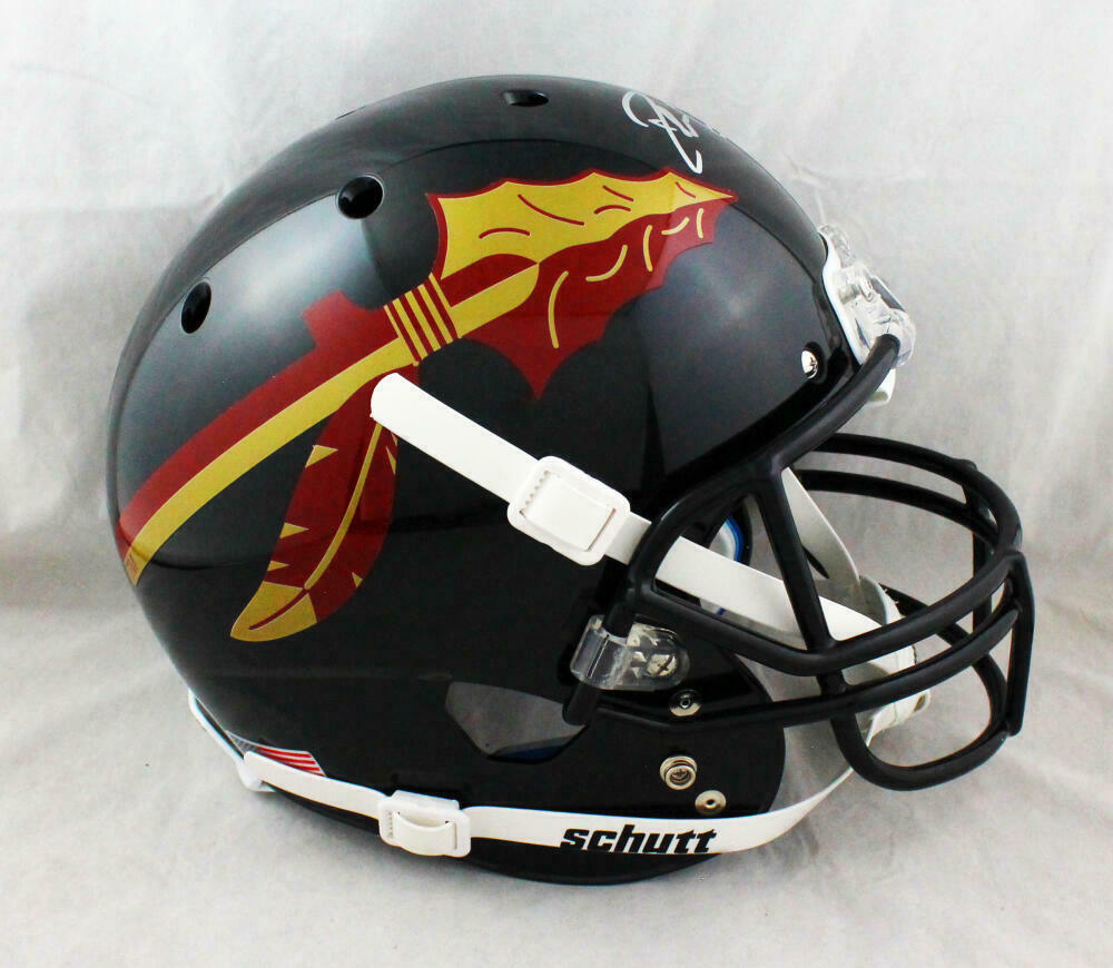 Deion Sanders Autographed Florida State Seminoles Full Size Black Helmet - Beckett Auth *Silver This is a hand autographed Helmet of Deion Sanders of the Florida State Seminoles. This is a Riddell Football Full Size Replica Helmet. This item has a Beckett Authentication, which comes with a Beckett numbered and a matching Beckett Certificate of Authenticity. You can view this item on the Beckett Authentication website, it shows when and where the item was signed. It was signed either at a public autograph appearance or a private signing. This is a stock photo of the item. Although you may not receive this exact item, the item you receive is virtually identical and brand new in great shape.