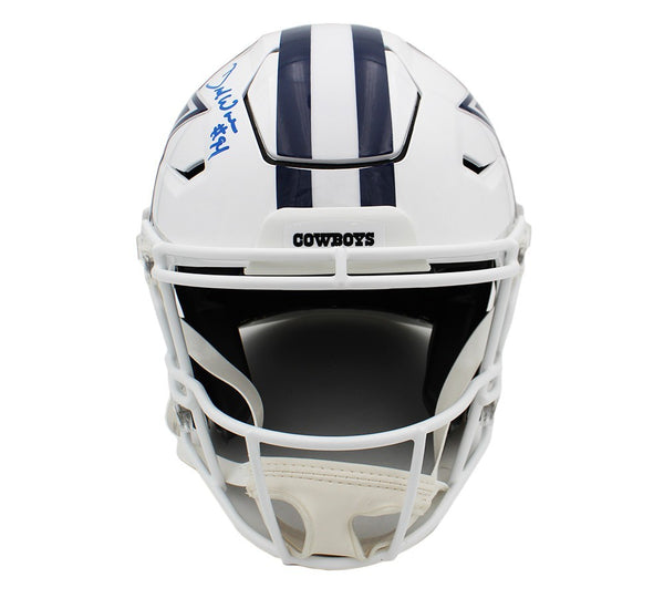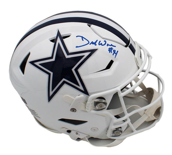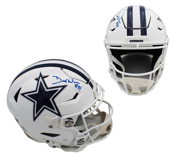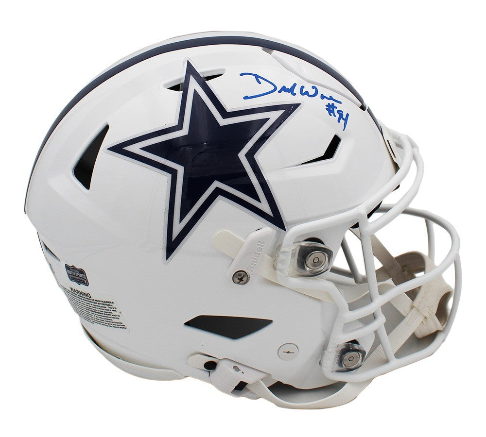 A Dallas Cowboys Speed Flex Authentic Alternate White NFL Helmet hand signed by Demarcus Ware. The item and signature are in excellent condition. Demarcus was drafted into the NFL 2005 Round:1,Pick:11. Demarcus is a Super Bowl Champion (50). Demarcus 4xFirst-team All-Pro (2007-2009,2011). Demarcus 3xSecond-team ALL-Pro (2006,2010,2012). Demarcus 9xPro Bowl (2006-2012,2014,2015). Demarcus 2xNFL Sacks Leader (2008,2010). Demarcus 2xButkus Award (pro)(2008,2011). AUTHENTICATION: The item has been tagged with a SmarTag powered by Prova Technology, which gives you digital access to the items authentication records, including a proof picture from the signing.