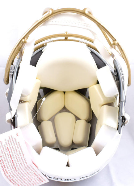 Derek Carr Autographed New Orleans Saints F/S Flash Speed Authentic Helmet-Beckett W Hologram *Black This is a Derek Carr of the New Orleans Saints hand autographed Riddell Football Speed Full Size Flash Speed Authentic Helmet. This item has a Beckett Witnessed Authentication, which comes with a numbered hologram and a QR code for verification. You can view this item on the Beckett website and it shows when and where the item was signed. It was signed either at a public autograph appearance or a private signing. This is a stock photo of the item. Although you may not receive this exact item, the item you receive is virtually identical, brand new, and in great shape.