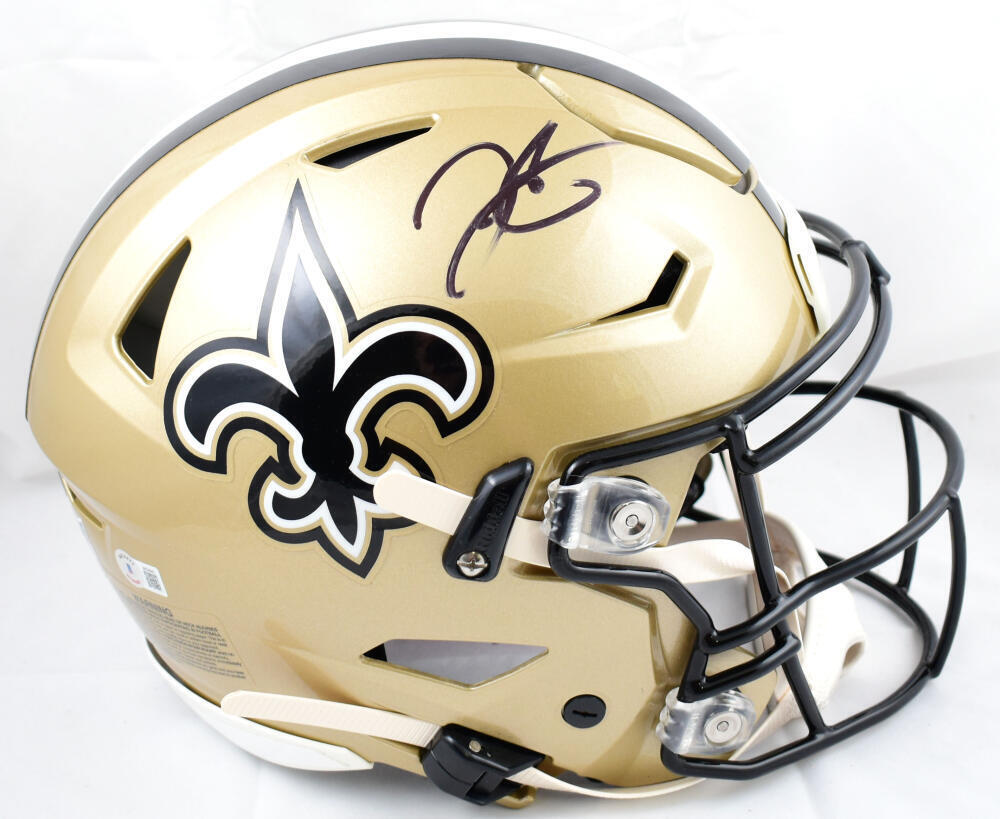 Derek Carr Autographed Saints F/S Speed Flex Helmet-Beckett W Hologram *Smeared