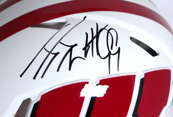 This is a hand autographed helmet of Derek, TJ and JJ Watt of the Wisconsin Badgers. This is a Riddell Football Full Size Speed Authentic Helmet. This item has a James Spence Witness Protection Authentication, which comes with a numbered sticker and a matching JSA Certificate of Authenticity. You can view this item on the Spence LOA website, and it shows when and where the item was signed. It was signed either at a public autograph appearance or a private signing. This is photo is the exact item that you will be receiving. Please see pictures for further details. This is a hand autographed helmet of Derek, TJ and JJ Watt of the Wisconsin Badgers. This is a Riddell Football Full Size Speed Authentic Helmet. This item has a James Spence Witness Protection Authentication, which comes with a numbered sticker and a matching JSA Certificate of Authenticity. You can view this item on the Spence LOA website, and it shows when and where the item was signed. It was signed either at a public autograph appearance or a private signing. This is photo is the exact item that you will be receiving. Please see pictures for further details.