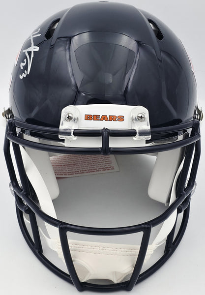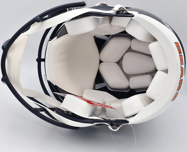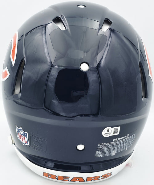 This is a Chicago Bears Blue Full Size Authentic Speed Helmet that has been hand signed by Devin Hester. This item has been certified authentic by Beckett Authentication (BAS) and comes with their tamper-proof QR Code hologram.
